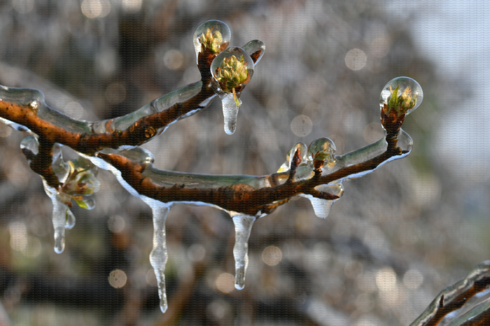 Lutte contre le gel par aspersion - Verger de poirier, Lanxade (24) : 10/03/2021