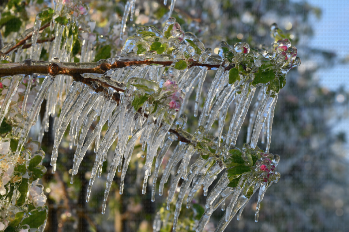 Lutte contre le gel par aspersion en verger de pommier. CTIFL Lanxade (24) : 7 avril 2021