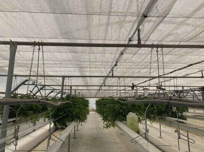 Amélioration de l'ombrage de la fraise en tunnel sur culture hors-sol à froid grâce à un filet piloté selon le rayonnement et la température de l'abri et permettant 49% d'ombrage